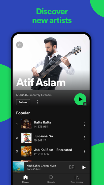 SpotifyAndroidアプリのインターフェース strong>は使いやすいです。暗い背景と明るいフォントのおかげで、見やすくなっています。最初に気付くのは、Spotifyがホーム画面の音楽をプレイリスト strong>に自動的に並べ替えることです。 最近再生された曲 strong>、最も再生された曲 strong>、新しいポッドキャストエピソード strong>、およびおすすめの音楽 strongの豊富なセレクションをご覧いただけます。 >。推奨されるプレイリストの種類は、リスニング設定 strong>によって異なります。Spotifyは、アプリを使用するほど、そのプレイリストを学習します。自分のおすすめを他の人と比較すると、さまざまな曲のおすすめが表示されます。 p>
